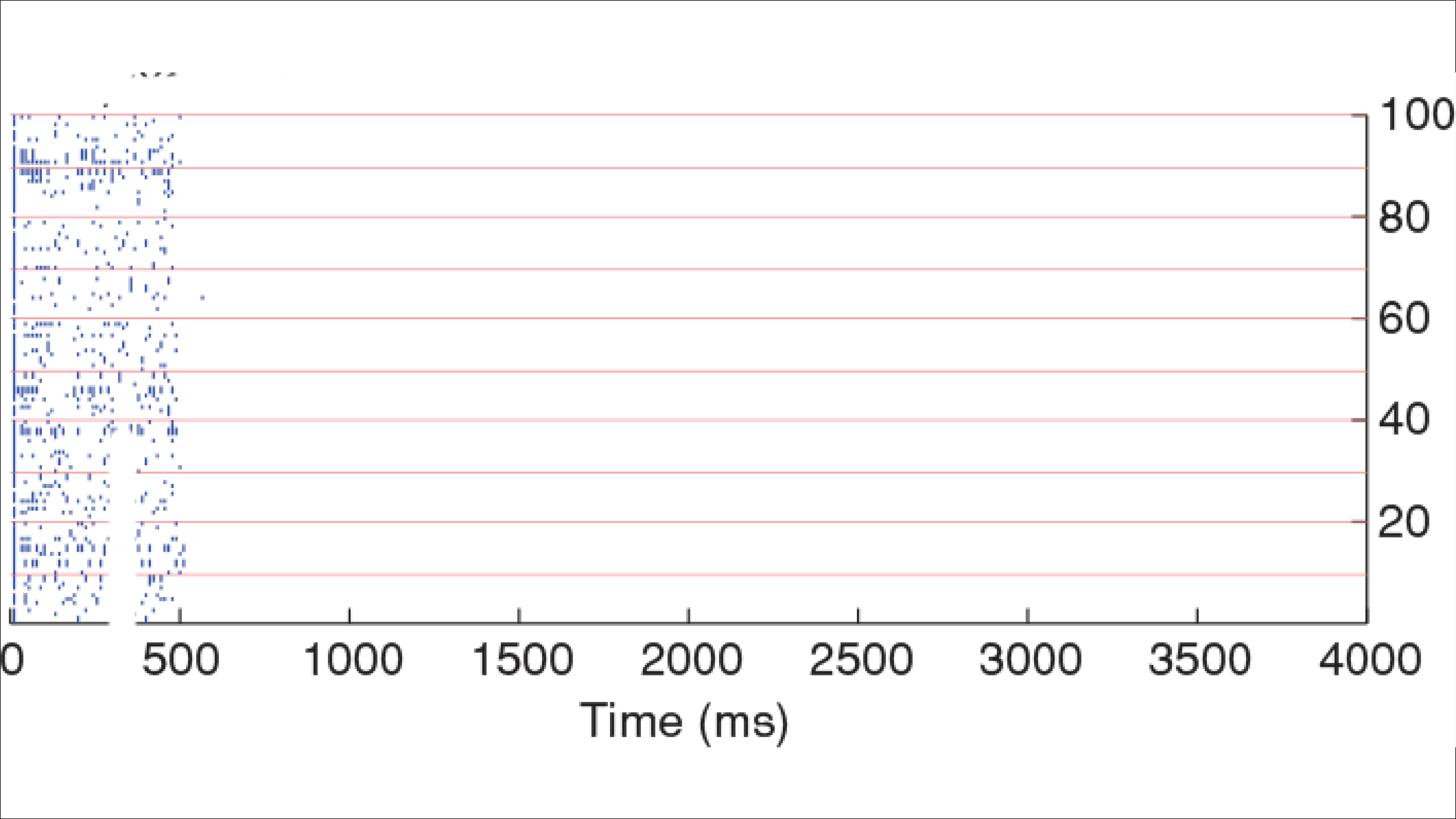 Along the vertical axis each neuron in the network is enumerated, from 1 to a 100, which was the size of the network we studied in this example.