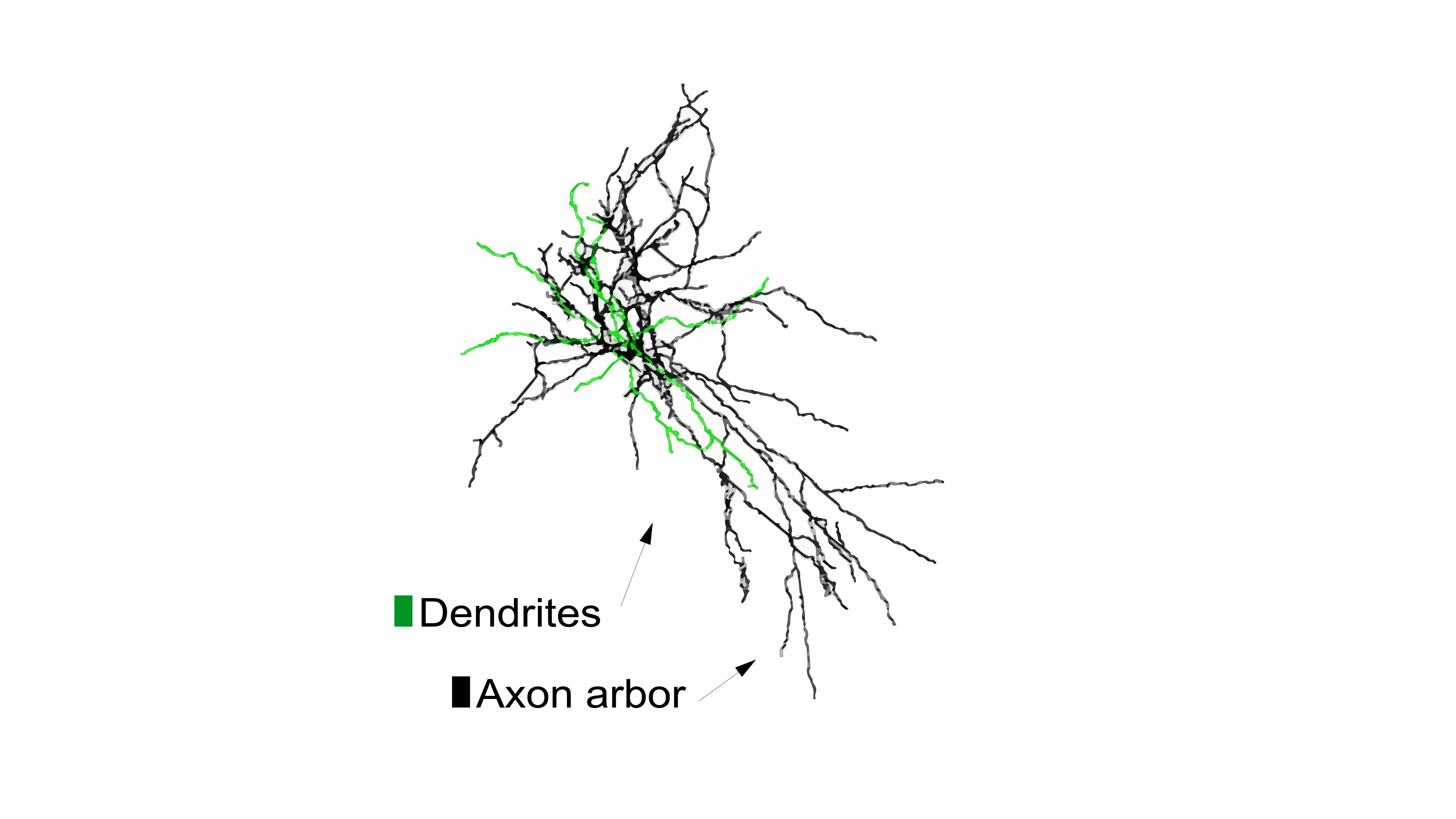 We tested this in Basket cell neurons, a type of inhibitory neuron in the cortex. Dynamic signaling in branching axons depends on a trade-off between the time it takes action potentials to reach synaptic terminals - temporal cost - and the amount of cellular material associated with the wiring path length of the neuron’s morphology - material cost. The synaptic terminals are the end of the neuron where it passes the signal to other neurons.